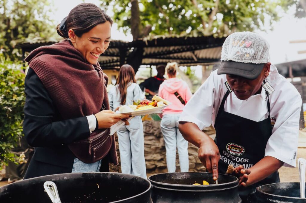 The experience is deliberately immersive. Guests are encouraged to explore Soweto by bicycle, tuk tuk or on foot. They sit around fires, listen to stories and eat traditional African meals prepared on site. Each interaction centres lived experience rather than performance, allowing visitors to connect with people instead of observing from a distance.