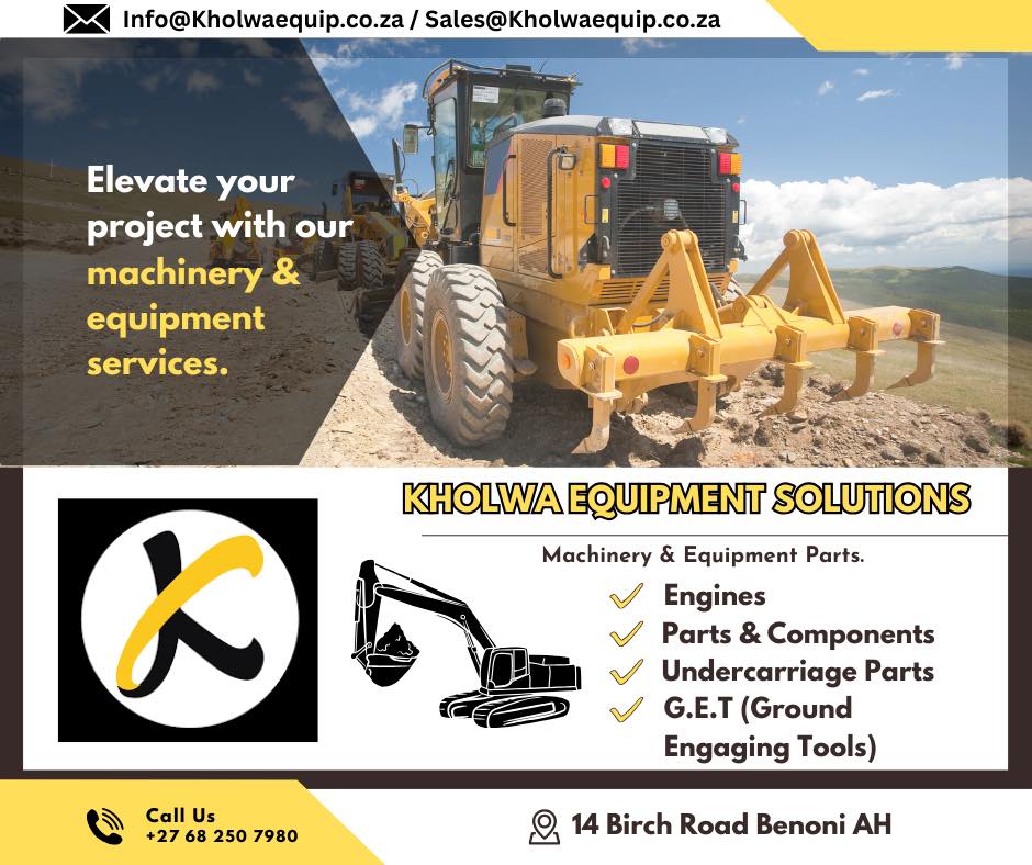 Kholwa Equipment Solutions supports machinery from well-known brands such as Caterpillar, Komatsu, Hitachi, Volvo, JCB, and Hyundai. This alignment places the company within a network of widely used equipment across South Africa’s industrial sectors.